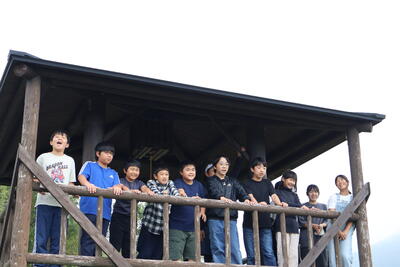 思った以上にぐんぐん空高く登っていきました。子供たちの夢もどんどん大きく膨らんでいってほしいです!そして、展望デッキの上からは大声で夢を叫ぶ「大声夢さけび大会」をしました。(笑)