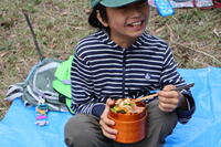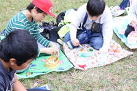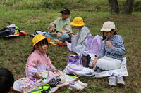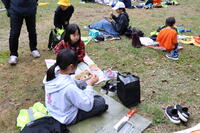 展望所から少し下って、親水公園でお弁当タイム。この日は、たてわり班ごとに輪になって食べました。