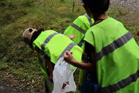帰り道には、「南小国町晴ればれボランティア」の一環として、児童一人ひとりがゴミ袋をもって、ごみ拾いをしながら帰りました。きれいになると気持ちがいいです!