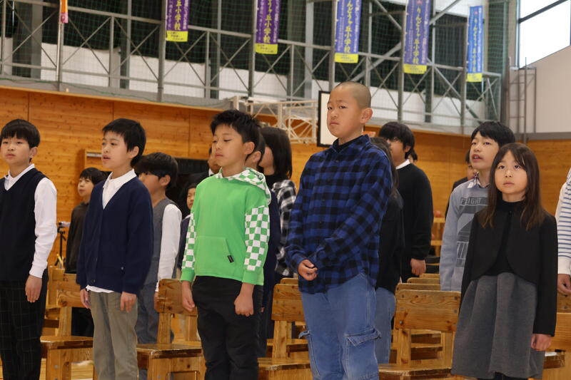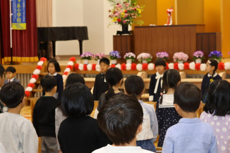 全校児童で歌う初めての校歌です。ピアノ伴奏は6年生です☆ 校歌も大合唱で、とても良かったです☆