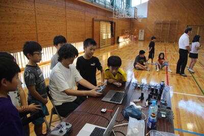 実際にドローンを飛ばしてみます。子供たちはなかなか器用です!