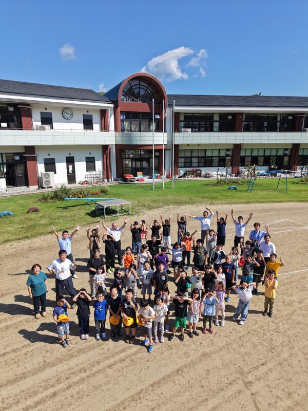 業間には、運動場で全校児童の写真を撮ってもらいました!