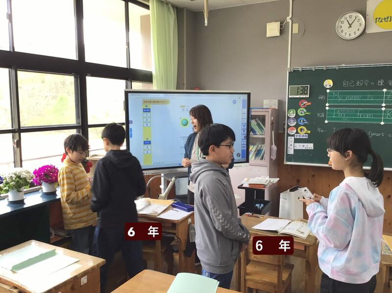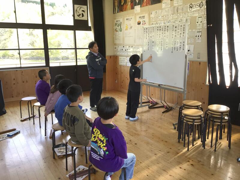 本校では、音楽は南小国中学校から音楽の先生が、3年生以上の外国語活動及び外国語では小国小学校の英語専科の先生が、また、高学年の理科では、理科のスペシャリストの先生がTTとして、りん小っ子の指導をしていただいています。