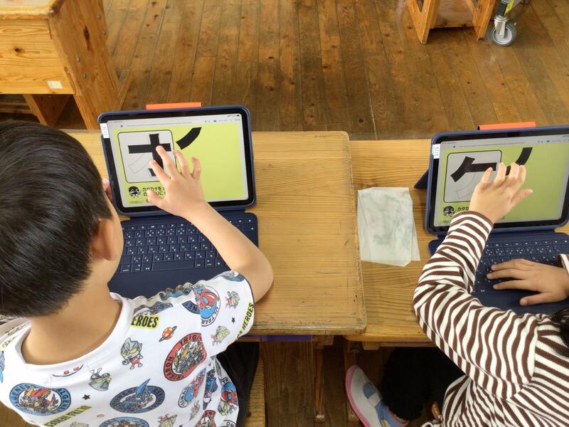 2年生がタブレットで補充学習を行っています。新しいタブレットにも慣れています☆