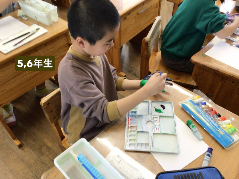 5,6年生です。教室に掲示する学級目標に手形をうつすようです☆