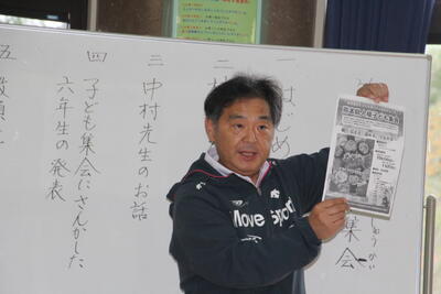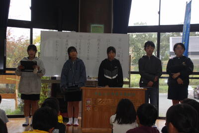 人権教育担当の先生から「熊本県人権子ども集会」についての話があり、実際に集会に参加した6年生5名が感想を発表しました。