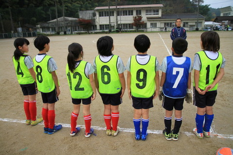 写真は、4年生チームの始まる前の整列と円陣の様子です。