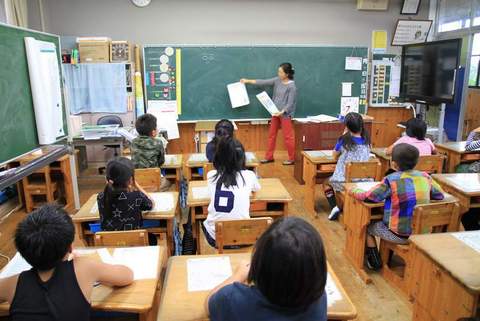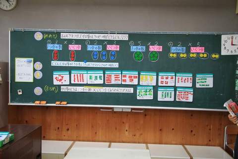 かけ算の式で表したり、おはじきの操作をしたりして、しっかりと学んでいました。