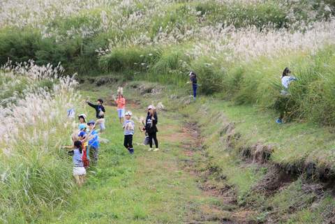 校区にある平野台の親水公園と恋人たちの丘、その先の山頂を目指しました。