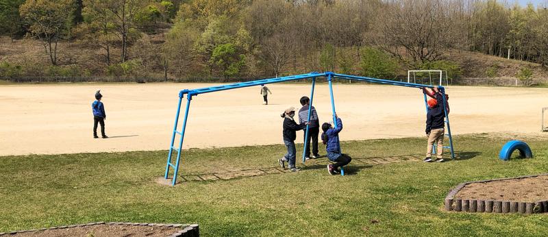 晴天の下、久しぶりに会った友達と楽しく遊ぶ姿が見られました。