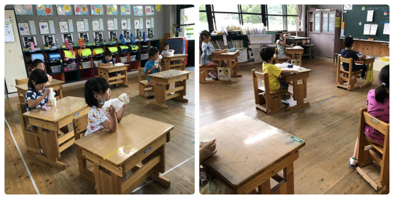 今日も学校では音楽に合わせてブクブクうがいをやっていました。