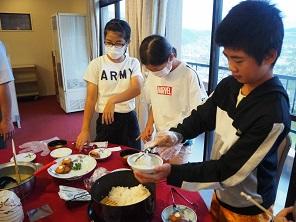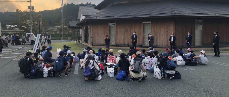 二日間の修学旅行を終えた子どもたちが降りてきました。