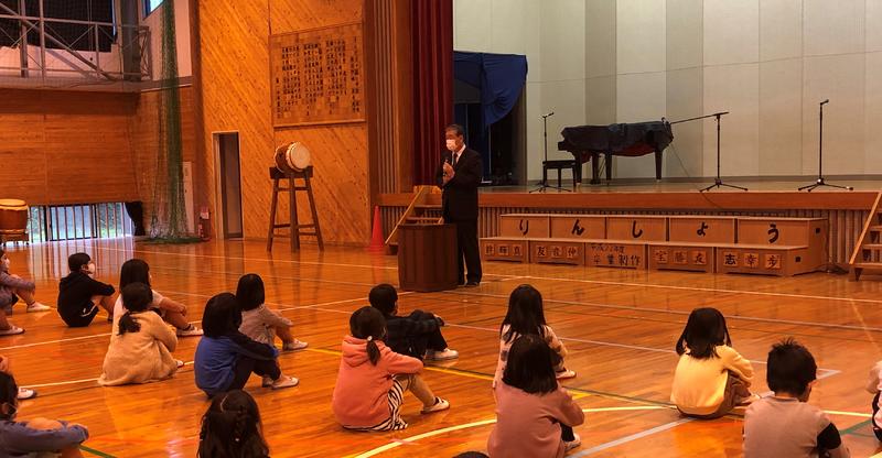 Hさんが亡くなられたことを全校児童に校長から伝えたいと、臨時に集会を行いました。