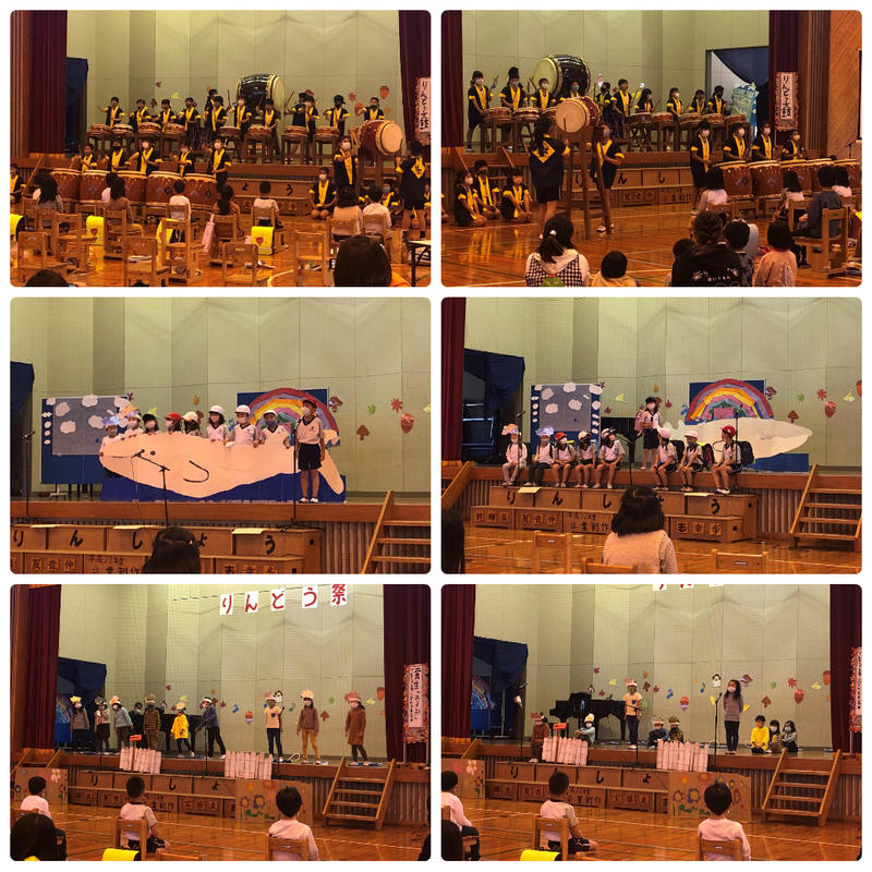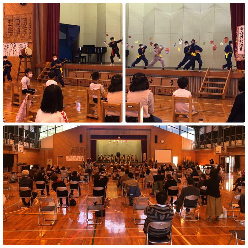 学級の発表の他にも、3年生以上での「りんどう太鼓」や、道場で稽古に励んでいる子たちの少林武術演武もあり、花を添えてもらいました。