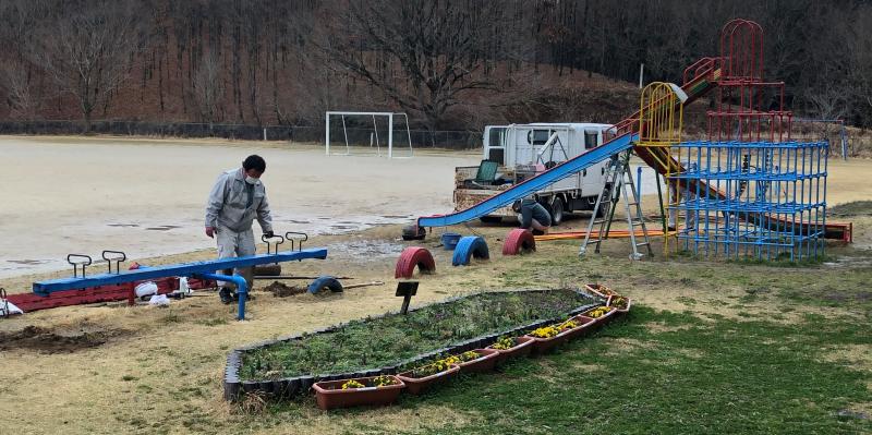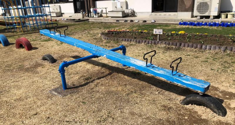 老朽化によって遊ぶことができなくなっていた滑り台とシーソー。