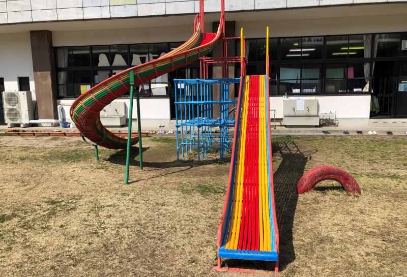 滑り台はすり減っていたパイプを新しいものに変えました。
