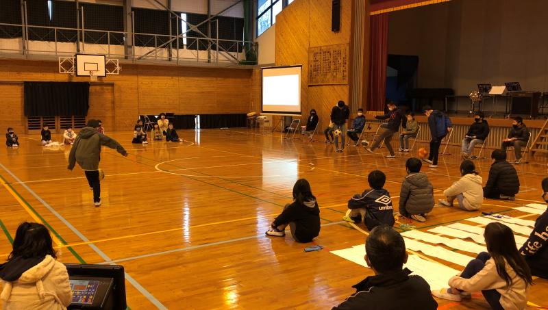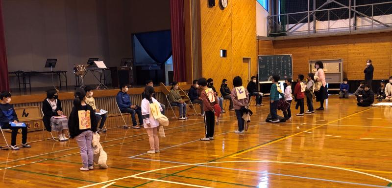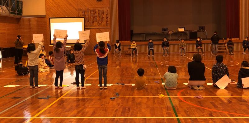 という声かけに、なんと全学年、全員が体育館に集まってくれました。