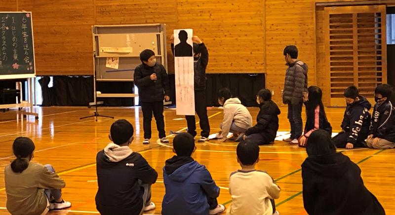 拍手で迎えられ、みんなの前に座る6年生は、照れながらも嬉しそうです。