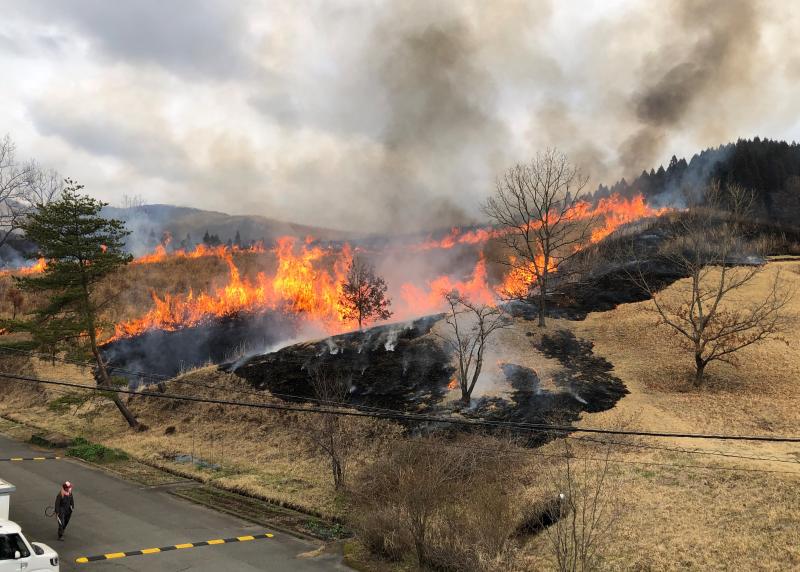 地域の方々が協力して火を放ち、安全を確保しながらの作業。