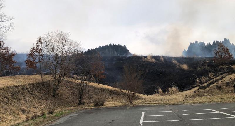 今日は午後から学校の周りの原野で野焼きが行われました。