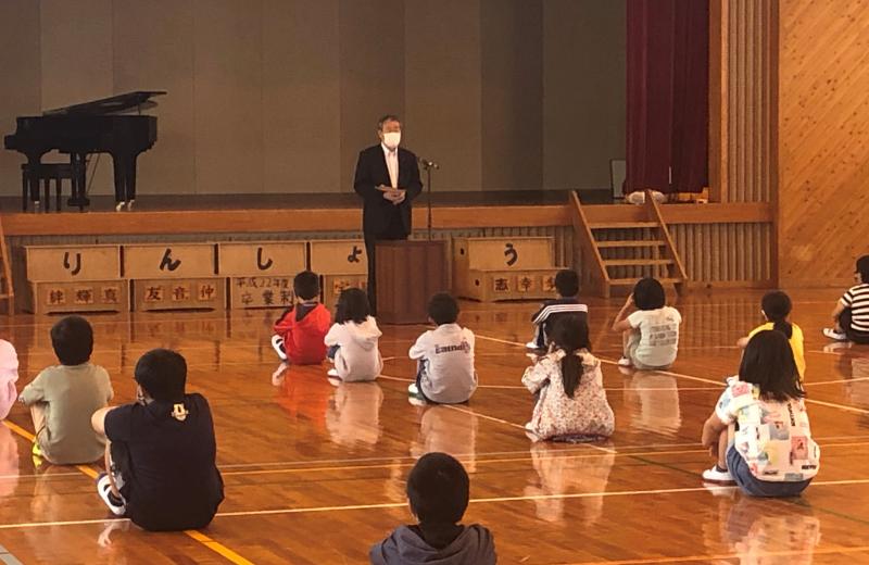 全校集会は、校長講話です。