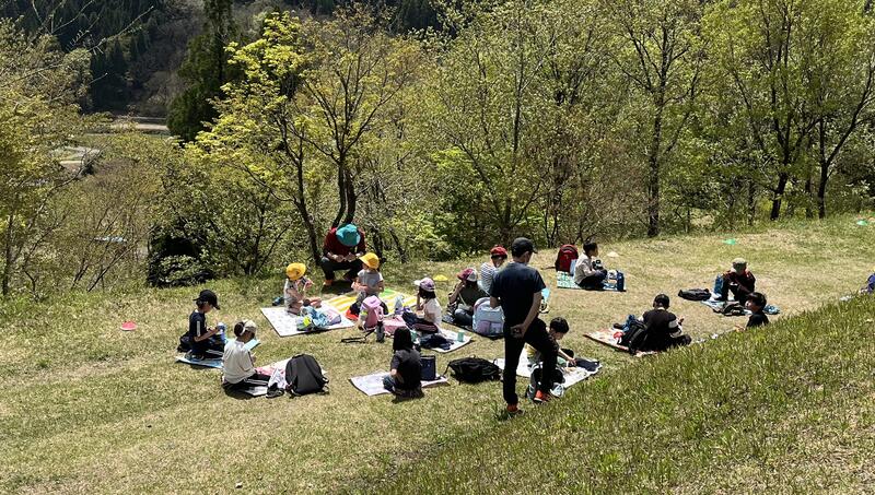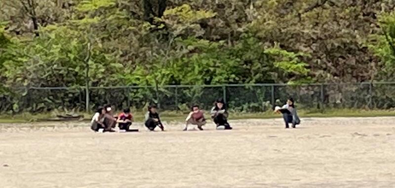 奥の方では、1,2年生が生活科で春の生き物でも探しているのでしょうか。