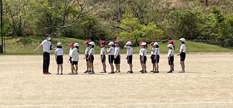 3,4年生は体育で、かけっこやリレーで汗を流していました。