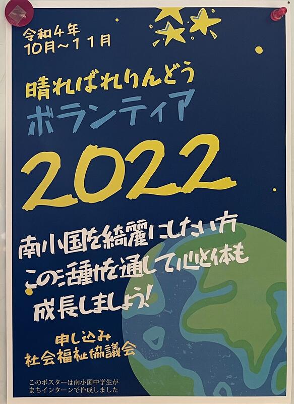 上の2枚のポスターは南小国中学校の生徒の作品。