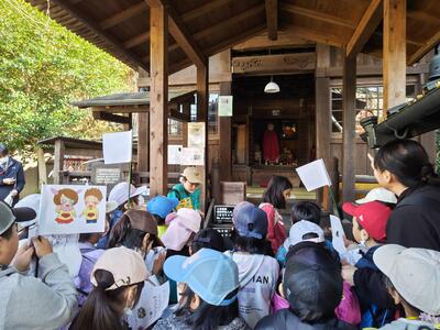 11月29日(水)に南小国町内3つの小学校合同での学習で、黒川温泉に行ってきました。温泉街を見学したり、黒川温泉について教えていただいたりしました。