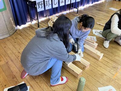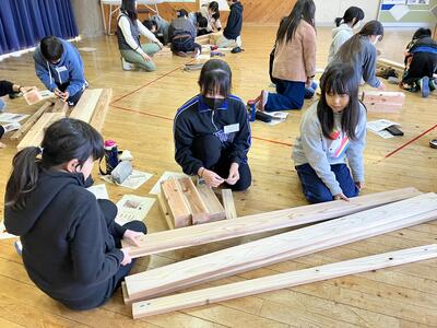 阿蘇森づくり協議会主催の木工教室(木を学ぶ授業)があり、そこで5・6年生が卒業制作として木のベンチを作りました!指導に来ていただいた阿蘇地域振興局の方々から、「協力していた姿が素晴らしかったです。」とお褒めの言葉をいただきました!