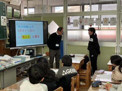 阿蘇教育事務所のスクールカウンセラー、仁木先生をお招きして、「『今この瞬間』に戻る」と題して、ストレス対処学習をしていただきました。心が苦しいときや悩んでいるときにどうすればいいかを教えていただきました!