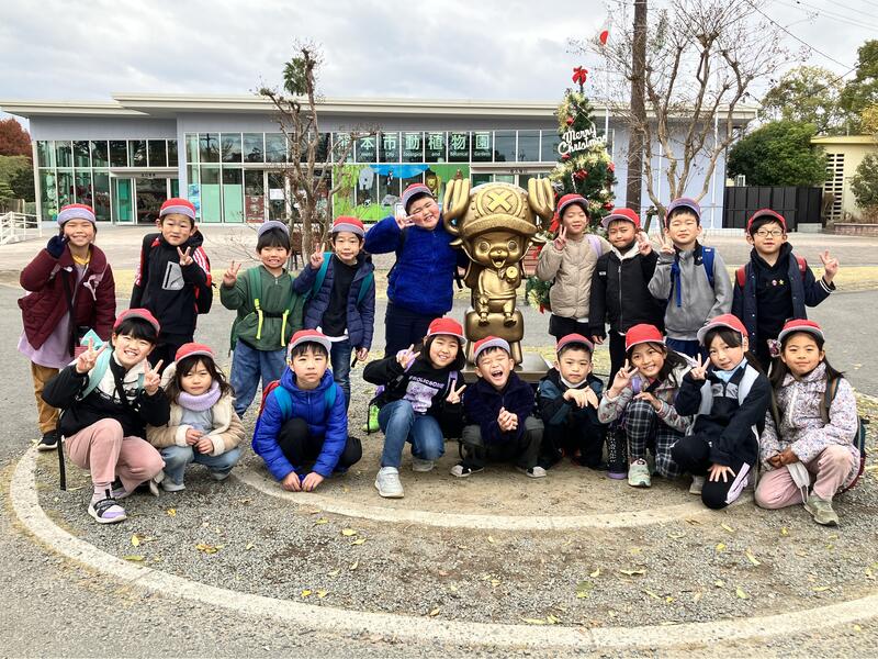 12月1日(金)に、1・2年生が生活科の見学旅行で熊本市動植物園に行きました。しっかりと動物の観察をした後は、公共の場の過ごし方の学習として、チケットを購入し乗り物に乗りました!