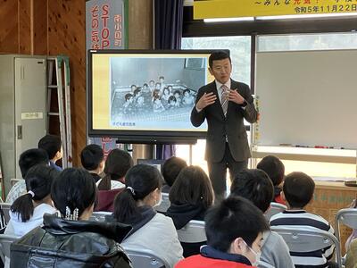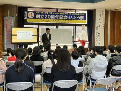 12月7日(木)にりんどうヶ丘小学校創立20周年を記念して、本校の前身校の一つである黒川小学校卒業生の髙橋周二町長様に記念講演をしていただきました。