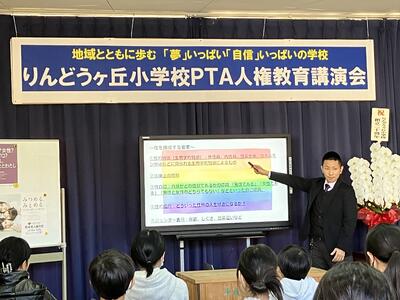 ご自身の小学校時代の話やりんどうヶ丘小学校の子供たちに頑張ってほしいことをお話いただきました。特に①挑戦しよう!②自分のことを褒めよう!③生活の中でメリハリを付けよう!の3つは頑張ってほしいと思いを伝えられました!