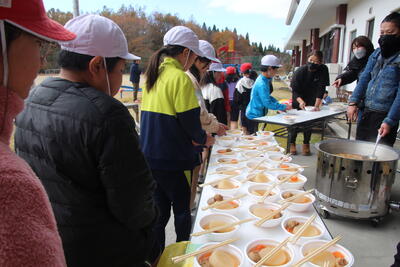 保護者の方がつくってくださった「大根汁」をいただきました!