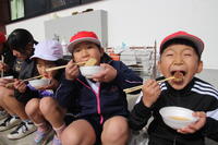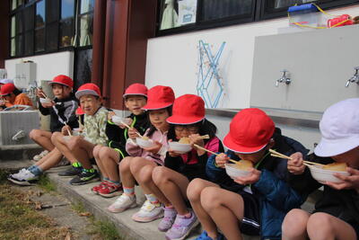 いつもとは違う教室やメンバーで食べるので、子供たちは食欲も増して楽しそうです。