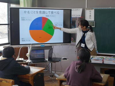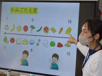 高学年では、食事の選び方や噛むことについてのお話をしていただきました。