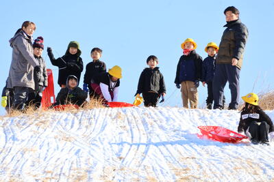 まずは高学年が滑って、滑りやすい丘にしてくれました!