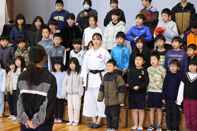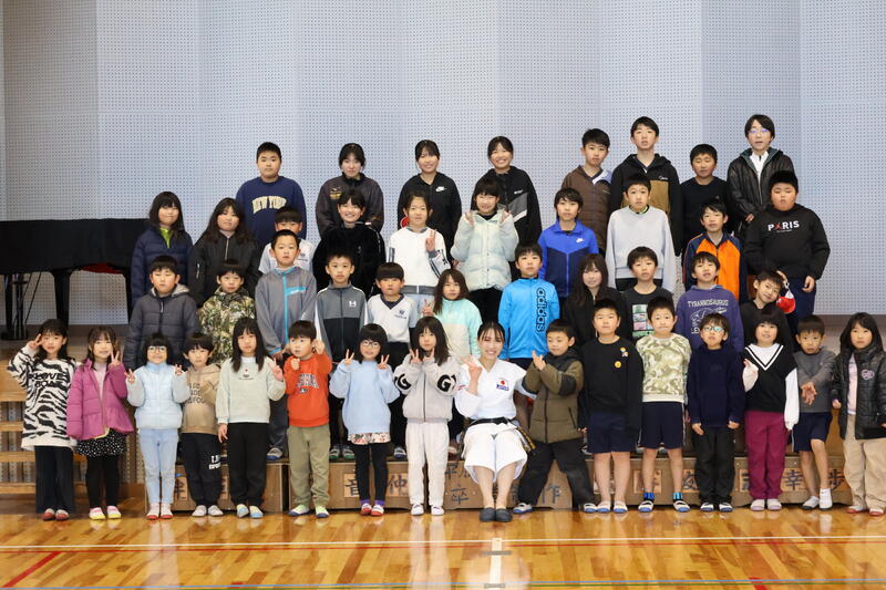 アスリートが競技経験で培った様々な力を、授業を通して子どもたちに伝えることで、子どもたちの心身の健康の保持増進・豊かなスポーツライフの実現を目指す「アスリート派遣事業」として、空手道のトップアスリートである 大内美里沙 さんが来てくださいました!