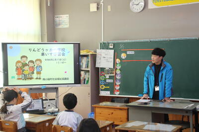 今回は、国語の学習で作った「りん小紹介ポスター」を園児に披露しました。楽しい学校の様子を上手に伝えました。