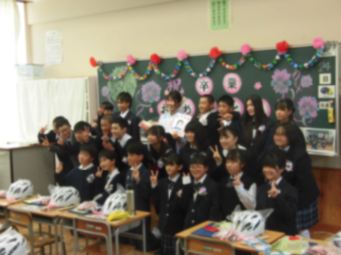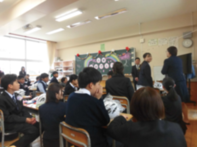 ※画像は、式後の学活の様子です。(肖像権保護のためにぼかしを入れてあります)