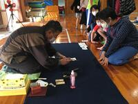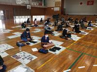 11月4日の2・3校時に徳村剛山先生にお越しいただき、卒業制作に取り組みました。自分が選んだ漢字一文字と消しゴム印で「私の一文字」を制作しました。墨をすって、書くというだけでも初体験なのですが、「もっと大きく!」や「きれいに書こうとしすぎている!」、「もっと頭の中で遊びなさい!!」などの言葉をもらいながら子どもたちは繰り返し試行錯誤していました。