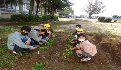 11月15日の生活単元の時間に、だいこんの間引きをしました。大きくなったら持ち帰らせます。楽しみにしていてください。(先週も書きましたが、コロナウイルスが流行する前は「おでんパーティ」をしていました。調理実習が早くできるようになるといいですが・・・。)