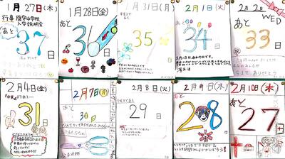 卒業までの残り日数を書いた日めくりカレンダーを一人一枚作って、掲示しています。「今日はどんなカレンダーかな?」と担任の私も楽しみにしています。しかし、残り日数が一日ずつ減ることは、寂しい気持ちです。卒業まで、男女関係なく学級全体で仲良くすることや、自分と同じように友達のことを大切にすることを継続して指導していきます。
