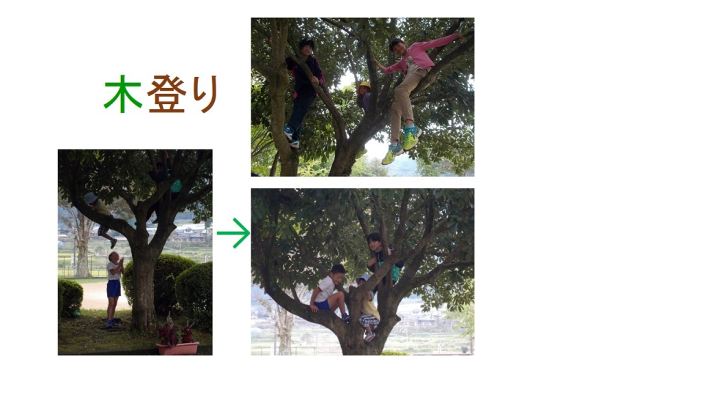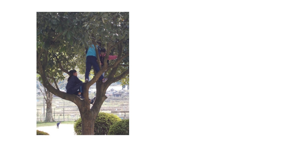 新学期が始まり、学校は賑やかな日常に戻りました。昼休みに楽しそうな声に窓の外を眺めると、樹上に三人娘。笑顔一杯のミーティング(女子会?)でした。この木は校長室の窓の外にあり、本校児童の木登りの技術を磨いてくれる先生です。この後、男子児童も加わっていっそう賑やかになりました。