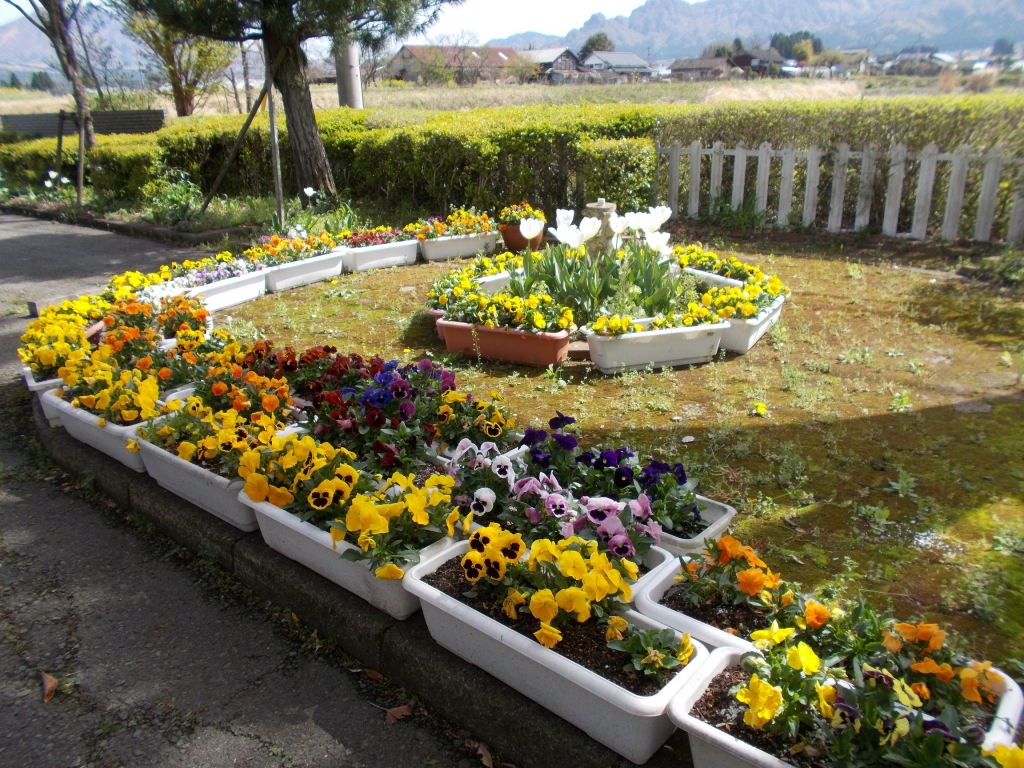 桜の花も満開ですが、チューリップもほぼ咲きそろってきました。この温かさで例年よりも生育が早く、始業式や入学式までもってくれと願うばかりです。春休みの期間中は、本校職員と時折遊びに来る児童がみてくれるのですが、それぞれに「入学式まで頑張って」と声かけながら世話してくれています。