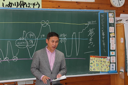 1月17日(火)にJFA復興こころのプロジェクト「夢の教室」を、5,6年生対象に行い、なでしこジャパン元監督の佐々木則夫様が夢先生として来校されました。ゲームを行った後、佐々木さんの生い立ちや体験談をもとにしたお話があり、夢を持つことの大切さを改めて教えていただきました。