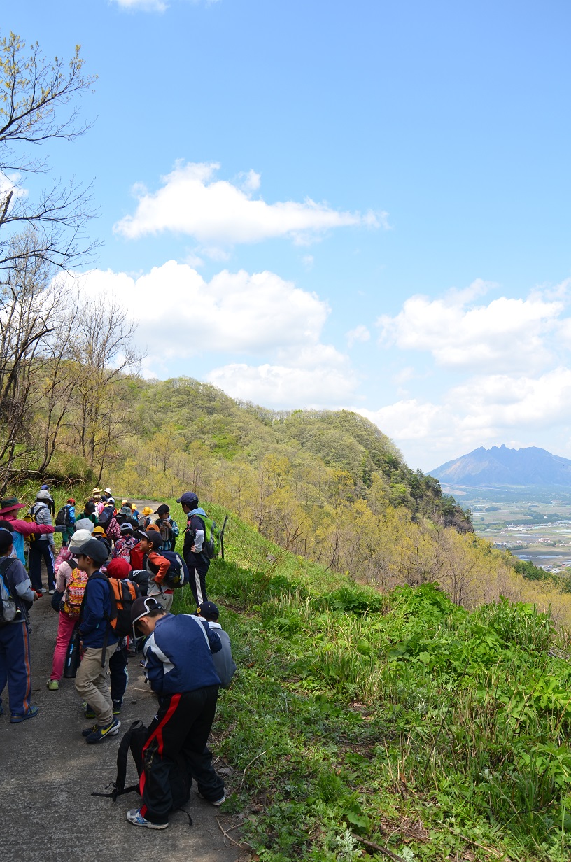 日頃、校庭から見上げている城ヶ岳を登山します。毎年歓迎遠足の際に登っていますが、1年生もたくましく歩き通しています。