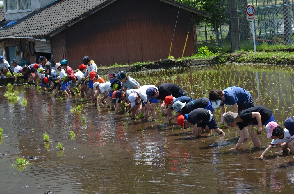 地域の棚田組合の皆さんの協力を得て、米作りや餅つきの体験を行っています。