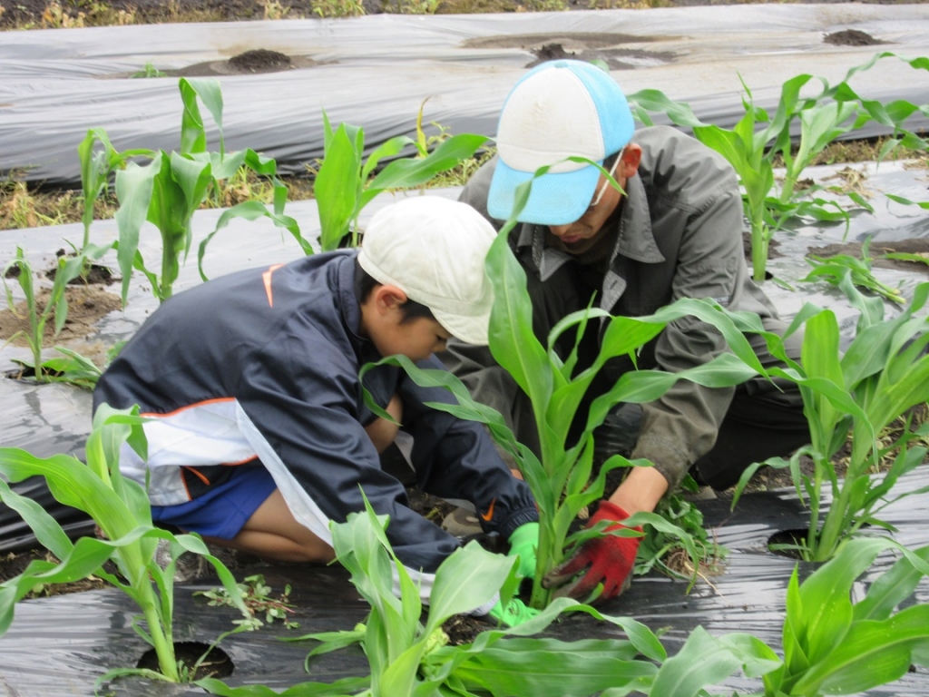 地域のJA壮青年部の方々にご協力いただきトウモロコシ作りを行い、収穫したトウモロコシは、夏祭り(両併祭り)で販売なども行っています。